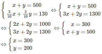 Giá trị x = 300; y = 200 thỏa mãn điều kiện bài toán.