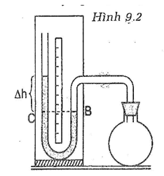 Bài 9.12 trang 31 Sách bài tập Vật Lí 8: Một bình cầu được nối với một ống chữ U có chứa thủy ngân (H.9.2).