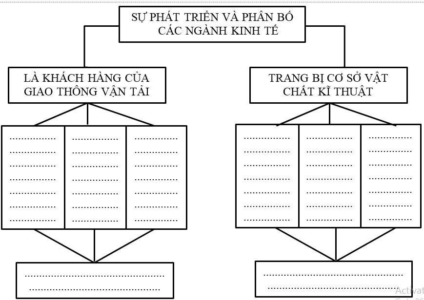 Bài 4 trang 57 Tập bản đồ Địa Lí 10: Hoàn thành sơ đồ sau để chứng minh vai trò quyết định của sự phát triển và phân bố các ngành kinh tế đến sự phát triển, phân bố và hoạt động của ngành giao thông vận tải.