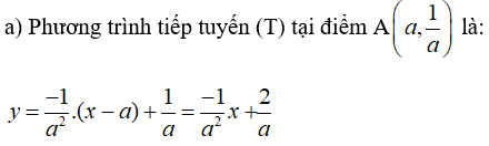 a) Tìm phương trình tiếp tuyến (T) của (H) tại điểm A có hoành độ a ( với a khác 0)
