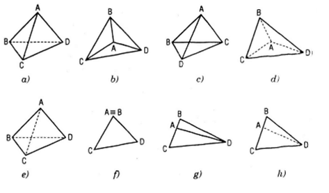 Bài 3 (trang 77 sgk Hình học 11 nâng cao): Trong các hình sau, hình nào là hình biễu diễn của một tứ diện?