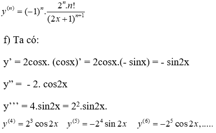 Bài 51 (trang 221 sgk Đại Số và Giải Tích 11 nâng cao): Tìm đạo hàm đến cấp được nêu kèm theo của các hàm số sau (n ∈ N*)
