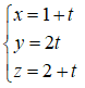 giao điểm của mặt phẳng (α) đi qua M và (α)⊥Δ. Mp(α) có phương trình: x+2y+z-3=0