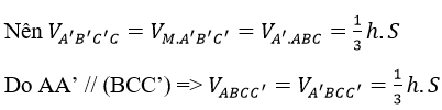 Gọi h là độ dài đường cao của lăng trụ, và S là diện tích tam giác ABC. Ta có: