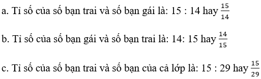 b. Viết tỉ số của số bạn gái và số bạn trai