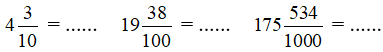 Câu 3.(Trang 56 Toán 5 VNEN Tập 1): Viết mỗi số thập phân sau thành phân số thập phân