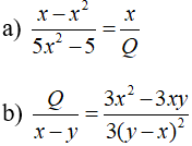 Dùng tính chất cơ bản của phân thức, hãy điền đa thức thích hợp vào chỗ trống (...) trong mỗi đẳng thức sau: