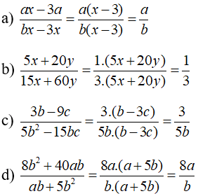 Phân tích tử và mẫu thành nhân tử rồi rút gọn phân thức: