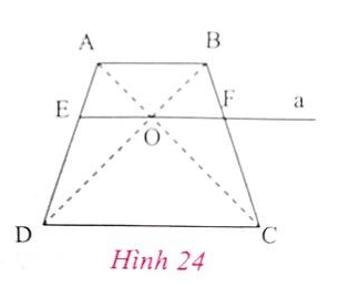Cho hình thang ABCD (AB // CD). Hai đường chéo AC và BD cắt nhau tại O. Đường thẳng a qua O và song song với đáy của hình thang cắt các cạnh bên AD, BC theo thứ tự tại E và F (h.24).