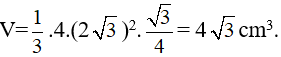 Tính thể tích của hình chóp tam giác đều, biết cạnh đáy bằng cm và chiều cao bằng 4cm.