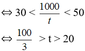 Khi sắp vào mùa đông, những loài chim di cư thường bay từ phương Bắc xuống phương Nam để tránh rét với vận tốc v từ 30 km/h đến 50 km/h. Nếu quãng đường di cư S khoảng 1000km thì chúng phải bay trong khoảng thời gian t là bao nhiêu giờ?