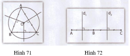 - Chú ý: Qua ba điểm thẳng hàng không vẽ được đường tròn (h.72).