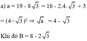 a) Tính giá trị của biểu thức B khi a = 19 – 8√3