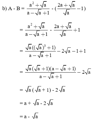 d) Tìm giá trị của a để biểu thức A – B đạt giá trị nhỏ nhất