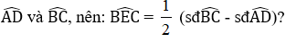 Theo em, số đo góc thì bằng nửa tổng số đo hai cung AmC và DnB.
