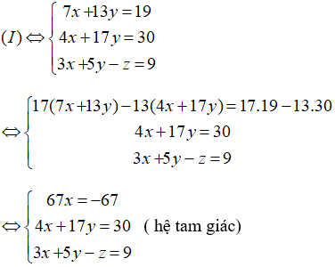 Bài 5 (trang 160 SGK Đại số 10): Giải hệ phương trình sau bằng cách đưa về hệ phương trình dạng tam giác :
