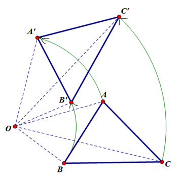 Trả lời câu hỏi Toán 11 Hình học Bài 5 trang 18: Cho tam giác ABC và điểm O. Xác định ảnh của tam giác đó qua phép quay tâm O góc 60o.