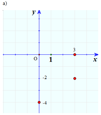 a) Biểu diễn trên mặt phẳng tọa độ các số phức sau: 3 – 2i, -4i, 3.
