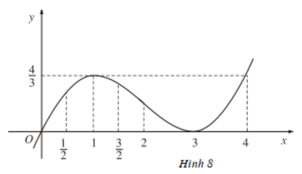 Quan sát Hình 8, ta thấy hàm số y = (x - 3)2 đạt cực đại tại x = 1 và đạt cực tiểu tại x = 3.
