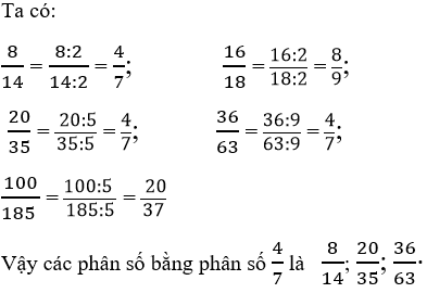 Vậy trong các phân số đã cho, phân số bằng phân số là