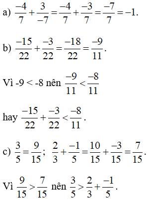 Trả lời câu hỏi Toán 6 Tập 2 Bài 7 trang 25 : Cộng các phân số sau....