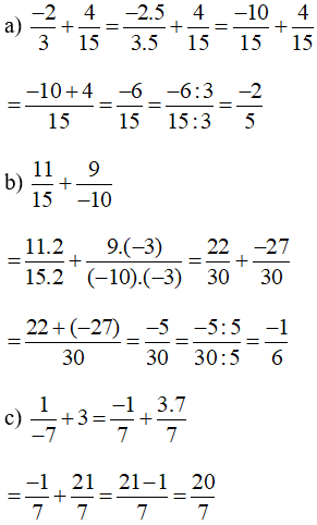 Trả lời câu hỏi Toán 6 Tập 2 Bài 7 trang 26: Cộng các phân số sau: