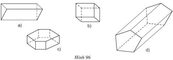 Bài 19 (trang 108 SGK Toán 8 tập 2): Quan sát các lăng trụ đứng trong hình 96 rồi điền số thích hợp vào các ô trống ở bảng dưới đây: