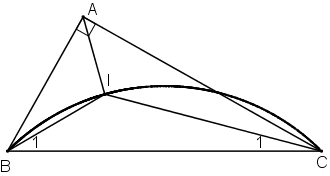 Bài 44 (trang 86 SGK Toán 9 Tập 2): Cho tam giác ABC vuông ở A, có cạnh BC cố định. Gọi I là giao điểm của ba đường phân giác trong. Tìm quỹ tích điểm I khi A thay đổi.