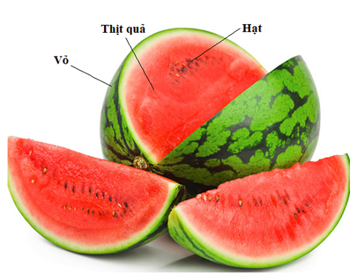 - Một quả thường có 3 bộ phận, đó là: Vỏ, thịt quả và hạt.