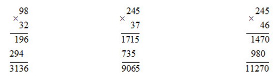 Đặt tính rồi tính 98 × 32 ; 245 × 37 ; 245 × 46
