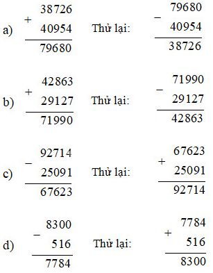 Vở bài tập Toán lớp 4 trang 37 Bài 1: Tính rồi thử lại :