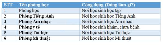 b) Viết thêm tên các phòng học khác có ở trường của bạn: