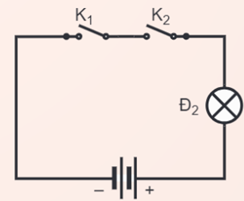 Quan sát Hình 21.1 và lập bảng các trạng thái đèn Đ1 và Đ2 (sáng/tối) khi các khóa K1 và K2 đóng/mở.