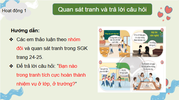 Giáo án điện tử Đạo đức lớp 3 Chân trời sáng tạo Bài 5: Tích cực hoàn thành nhiệm vụ ở lớp, ở trường