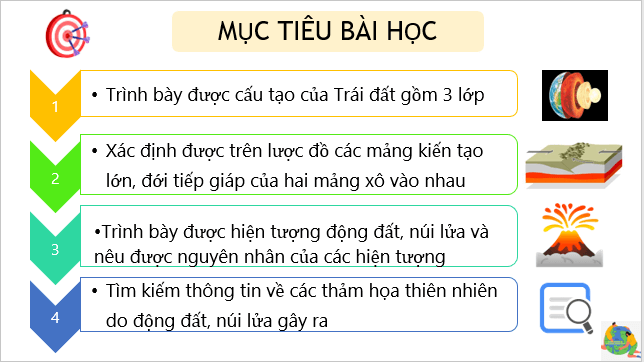 Giáo án điện tử Địa Lí 6 Cánh diều Bài 9: Cấu tạo của Trái Đất. Các mảng kiến tạo. Núi lửa và động đất