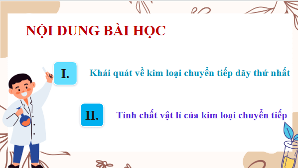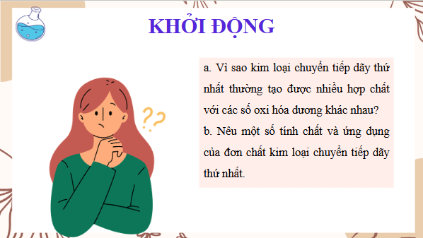 Giáo án điện tử Hóa học 12 Cánh diều Bài 20: Sơ lược về kim lại chuyển tiếp dãy thứ nhất