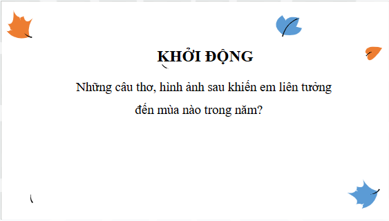 Với Giáo án điện tử Thu hứng Ngữ văn lớp 10 Kết nối tri thức hay nhất, thiết kế hiện đại, dễ dàng chỉnh sửa giúp Giáo viên có thêm tài liệu tham khảo để soạn bài giảng powerpoint Văn 10.