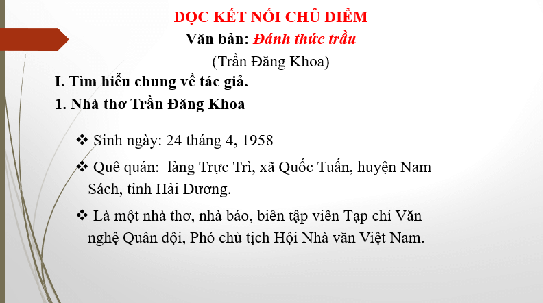 Giáo án điện tử bài Đánh thức trầu - Văn 6 Chân trời sáng tạo