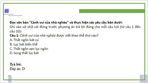 Trên đây tóm tắt một số nội dung miễn phí trong Kế hoạch bài dạy (KHBD) hay giáo án điện tử Cảnh vui của nhà nghèo Ngữ văn lớp 9, để mua tài liệu mời Thầy/Cô xem thử: