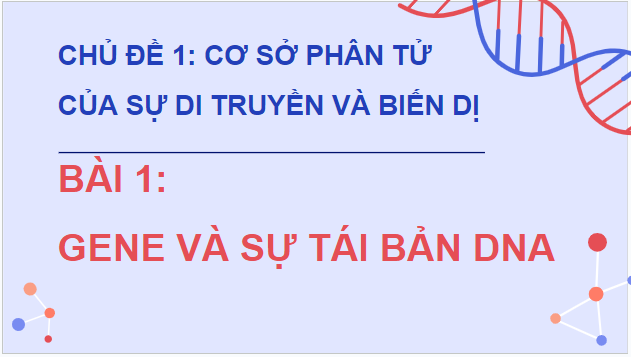 Bài giảng PPT Sinh học 12 Bài 1: Gene và sự tái bản DNA gồm 65 slide, với nội dung như sau: