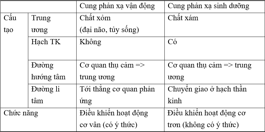 - Phân biệt được phản xạ sinh dưỡng và phản xạ vận động