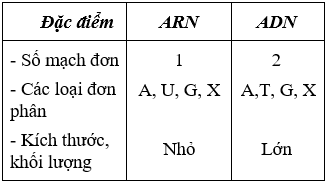 - Biết xác định những điểm giống nhau và khác nhau cơ bản giữa ARN và ADN.