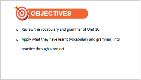 Bài giảng PPT Tiếng Anh 10 Unit 10 Project gồm 9 slide, với nội dung như sau: