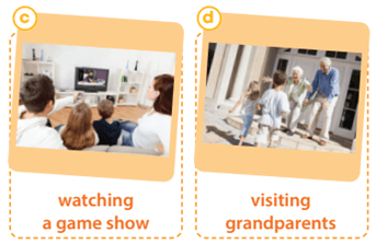 TASK 1: WHICH OF THE FOLLOWING ACTIVITIES IN THE PICTURES DO YOU THINK CAN BE FAMILY ROUTINES? (p.14) * Teacher: - Takes the 6 pictures in Task 1, prints them out and puts each picture on different tables. - Asks Ss to stand around the table with the activity they do most with their family. Ss go to the table with the activity they do most with their family. ** Ss do as instructed. *** Ss in each group share with the group how often they do that activity **** T asks randomly some Ss to share with the class how often they do the activity and leads in the lesson of “Family routines”: Each of the activities can become a family routine if a family decides to do together and regularly. The six pictures with six activities: |