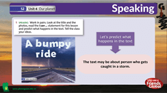 * Predicting the content of a text; planning and acting out an interview with a paraglider.