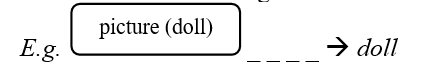 *Game:“Guess the word” Picture cards (doll, ball, teddy bear, car) - Divide the class into four groups. - Write a word on the board with several or all letters missing. - Have each team take turns calling out a letter. - Add the missing letters to the word if correctly guessed. - Give that team one point if it’s a correct guess. - Continue until the students guess the word correctly. - The groups that gets the most points win. Praise the winner. - Ask students to read all words aloud. - Check students’ pronunciation. àExpected outcomes and assessment - Task completed with excellence: Students can say the letters about toy wordscorrectly and fluently. - Task completed: Students can say the letters about toy words. - Task uncompleted: Students are unable to say the letters about toy words. |