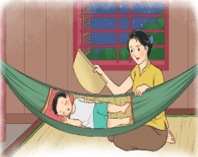 - HS trả lời: Những việc mà người thân thường làm để chăm sóc em như +Khi em bị ốm, mẹ nấu cháo cho em ăn, đo thân nhiệt, dùng khăn chườm trán cho em, mua thuốc cho em uống,... + Khi em đến trường, mẹ chuẩn bị quần áo, sách vở, đồ dùng học tập, đồ ăn cho em,... - HS trả lời: Bức tranh vẽ hình ảnh người mẹ đang quạt và đưa võng cho con nằm ngủ. + Dự đoán nội dung bài thơ Mẹ: Tình cảm yêu thương bao la, vô bờ bến của người mẹ dành cho người con. - HS chú ý lắng nghe, đọc thầm theo. - HS chú ý lắng nghe và luyện đọc. - HS đọc bài. |