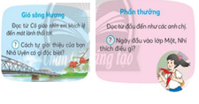 - HS xác định yêu cầu của BT1. - HS thực hiện yêu cầu. - Một số HS đọc và trả lời câu hỏi trước lớp. Chiếc nhãn vở đặc biệt: Ngắm những quyển vở mặc áo mới, dán chiếc nhãn xinh như một đám mây nhỏ, bạn nhỏ thích quá! Cậu học sinh mới: Ngoài giờ học, Lu-I và các bạn thường chơi những ván bi quyết liệt, những “pha" bóng chớp nhoáng, đầy hứng thú và say mê, Lu-i thường rủ Véc-xen, người bạn thân nhất của mình câu cá ở dưới chân cầu. Gió sông Hương: Cách tự giới thiệu của bạn Nhã Uyên thật đặc biệt khi Uyên đọc bài thơ về Huế với dòng sông Hương, lớp học hôm ấy như có gió sông Hương thổi tới. Vì Uyên đã mang giọng nói quê hương sâu lắng ra Thủ đô thân thương... Phần thưởng: Ngày đầu vào lớp Một, nhìn chiếc khăn quàng đỏ trên vai các anh chị lớp lớn, Nhi thích mê. |