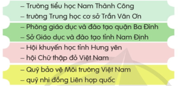 - Tìm được tên riêng của các cơ quan, tổ chức trong bài đọc đã qua, dựa vào bài đọc đó, viết được một đoạn văn, trong đó có tên riêng của một số cơ quan, tổ chức; viết đúng một số tên riêng khác.