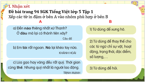 Giáo án điện tử Luyện từ và câu: Đại từ lớp 5 - Cánh diều
